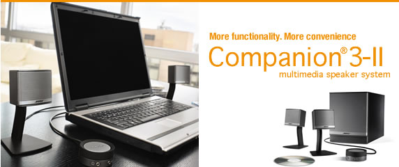 「Companion® 3 series II」は、“TrueSpace®ステレオシグナルプロセッサー”、ネオジウムマグネット採用の“マイクロキューブスピーカー”、独自の重低音再生技術を搭載した“ベースモジュール”など、ボーズ独自の技術を結集したマルチメディアスピーカーシステムです。