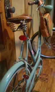 July 03, 2010 自転車 カテゴリ:S tylesC ars-cycles 僕の出勤用自転車である。 ラレー社のビンテージフレーム 色はアンティークブルーをシャギーにペイント。 車輪は前輪>>後輪としてレトロ感を演出。 バイクカーゴとして「TUMI」のサンフランシスコメールバッグを取り付け。 サドルは「Brooks B67S」のハニー色。 バックから見たこの「Brooks」の文字が眩い。 やはりハンドルは定番のママチャリ→シティーバイク使用としている。 フランスなどではこの手のハンドルであえて乗るのがお洒落だ。 手をかけるから愛着が沸くのである。