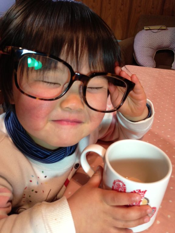 「パパ! ママののど、なおってよかったね!よかったね。」