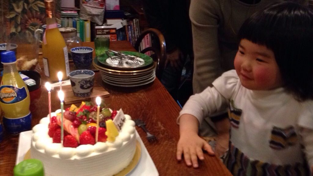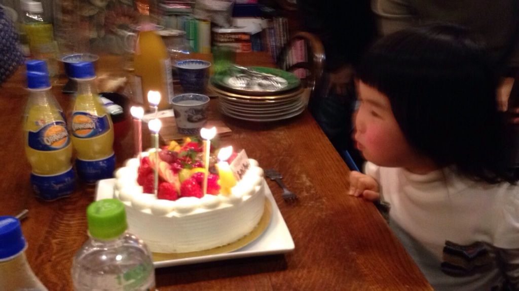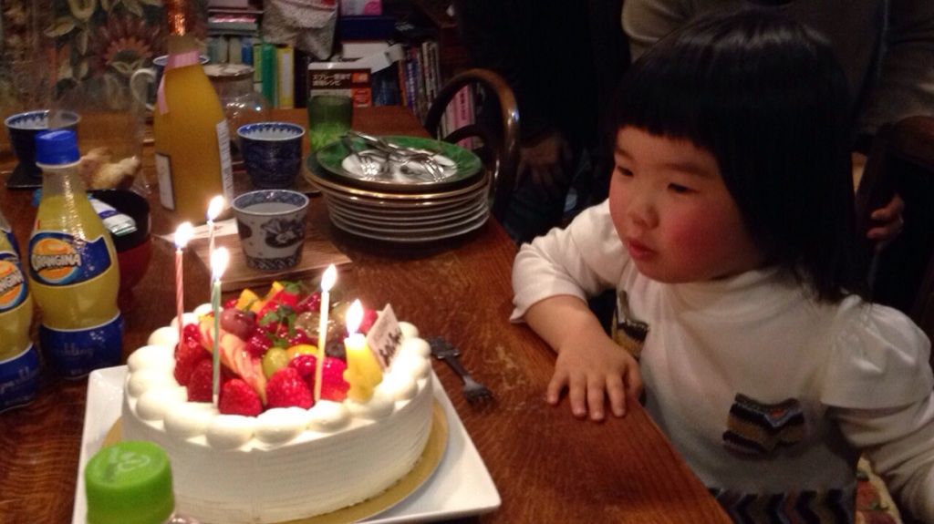 クロンヌの7号フルーツケーキのろうそくを4歳の4にしたいと。