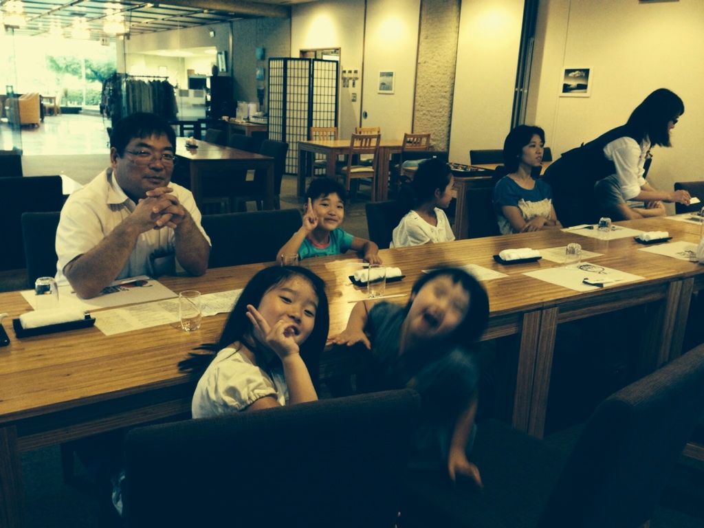 July 09, 2014 入鹿の里お泊り カテゴリ:F amile お泊りがとってもみんな楽しみで盛り上がった。 アッピーと寝たくてみんなが一緒に寝たくてくじ引き。 男たちは一部屋で。 さとちゃんのいびきが怪獣なみで寝られず・・。 三部屋借りてて次の日、一部屋が空いていたというオチ。 そういえば料理がおいしかったな・・。