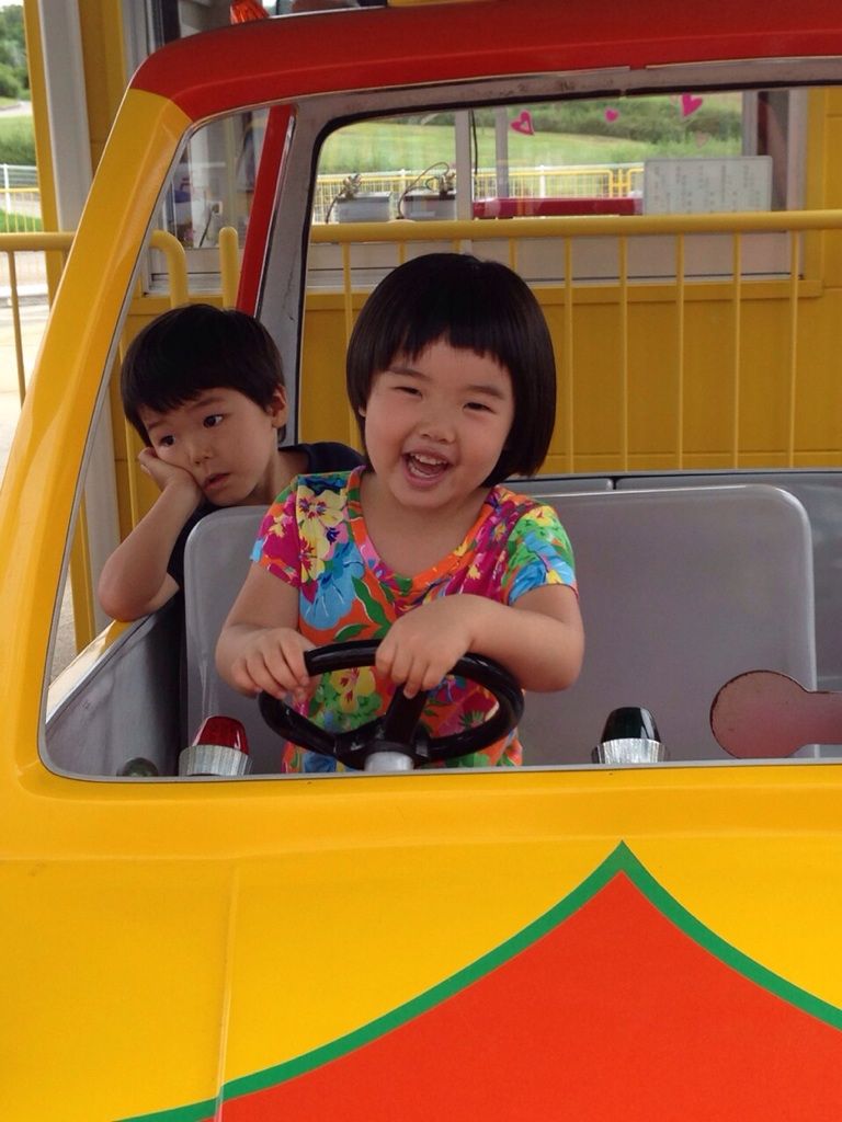 Tくんがアッピーの運転をとても面白くない様子で待っています。