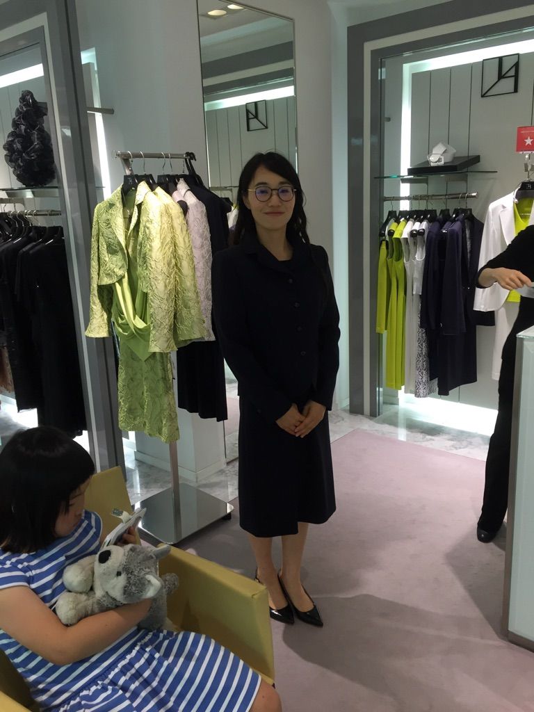 クルミボタンの数は、ショップやブランドによって、4つ、5つと まちまちですが、どちらでもOK。要は、ジャケットの合わせ目から、中のブラウス・インナーが見えずに すっきり着用出来る事がポイントです。