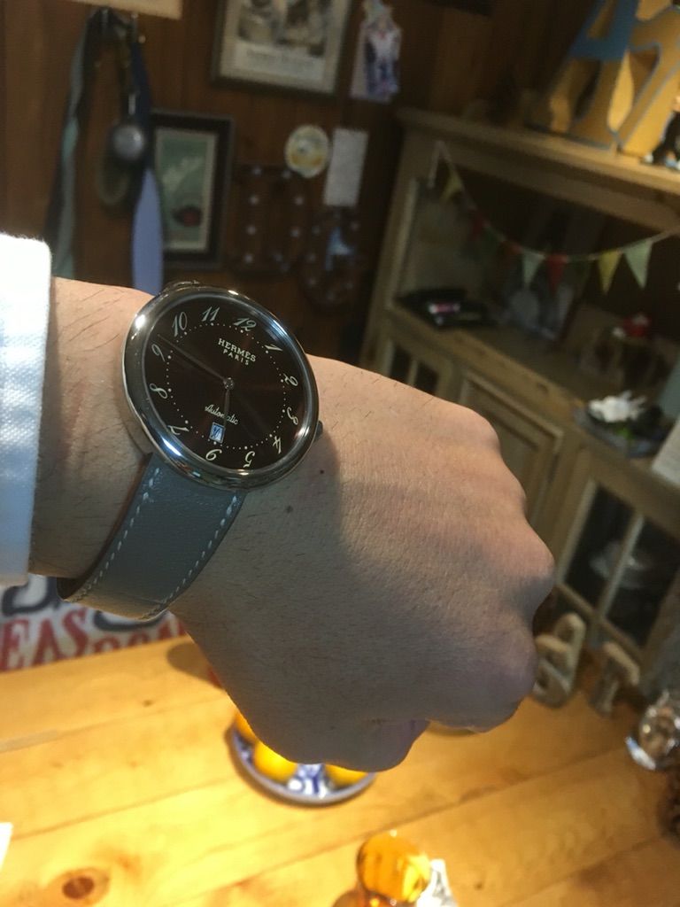 こと時計に関してはついついステンレスベルトの耐久性と通年性に逃げがちになります。特に夏などは汗でとてもベルトが痛みがちで困ります。ですのでステンレスベルトのほうが似合うブルガリや同じエルメスでもクリッパーを愛用します。例えばパテックフィリップのカラトラバをステンレスベルトにするなど邪道なことは時計自体のアイデンティティーが崩壊しかねません。