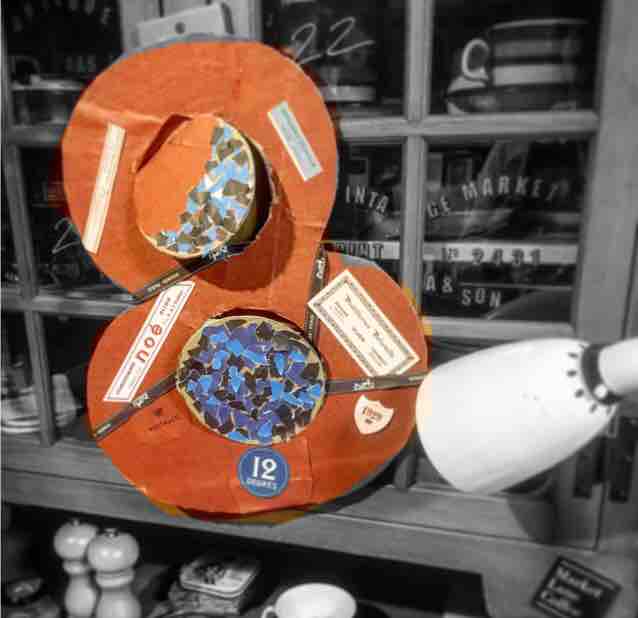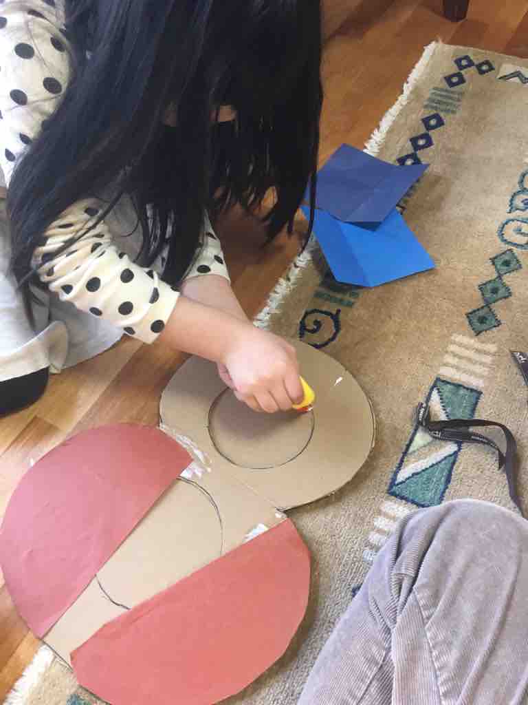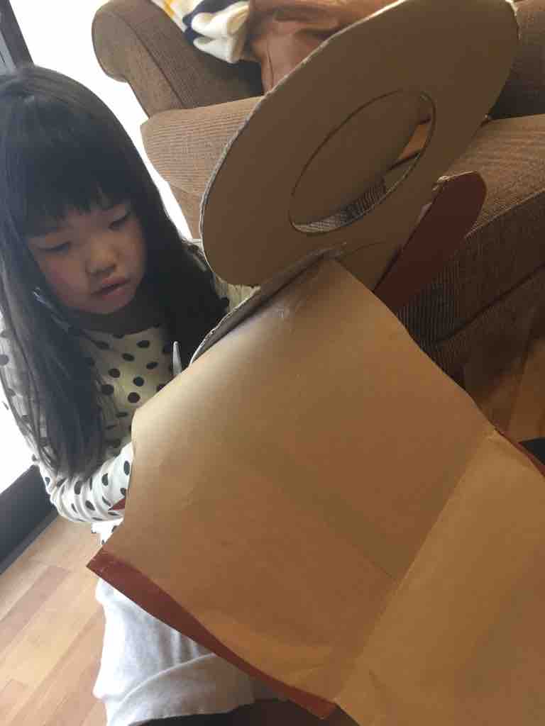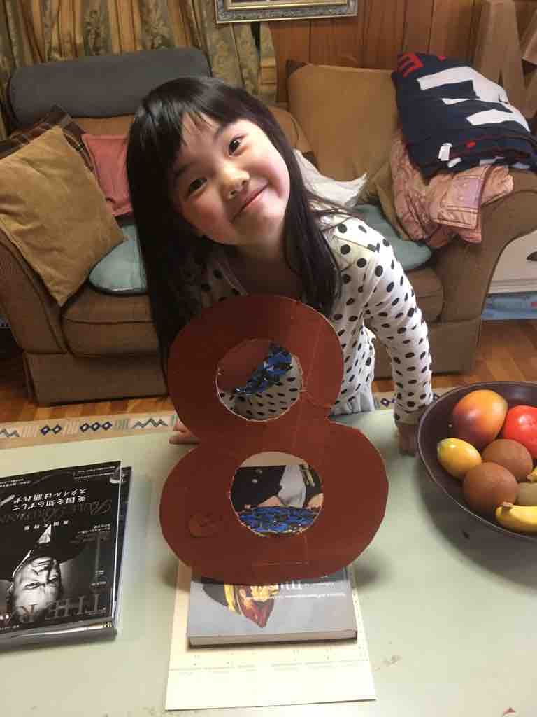 じいじが緊急入院してしまい多忙の中に陣中見舞いポスタルコの包装紙と段ボールを使って8歳のシンボルナンバーを作ることに