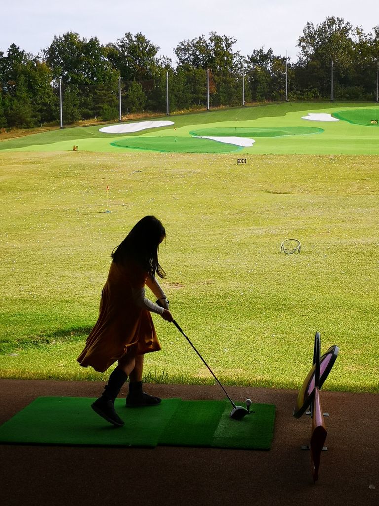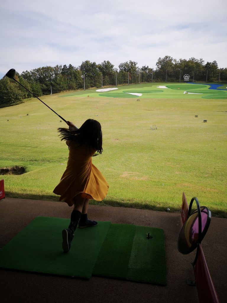 お 豪快にドライバーを振りぬける少女がいるぞ