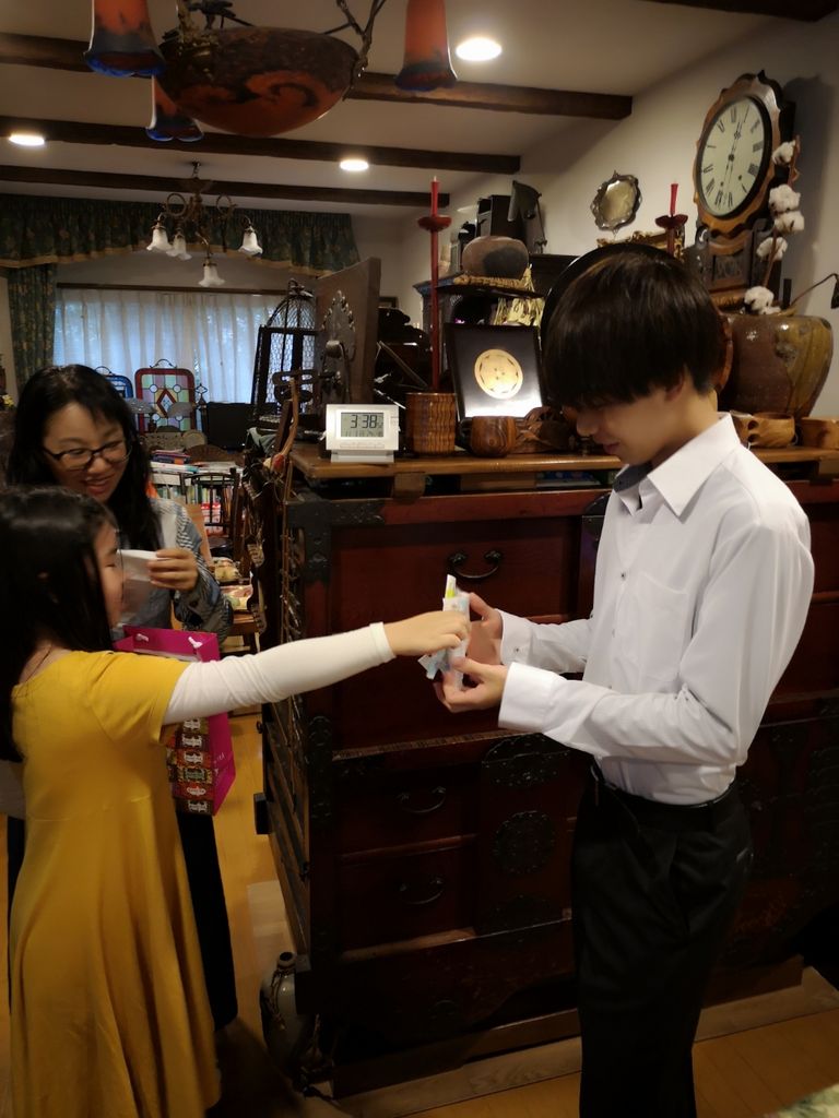 今日は憧れの従兄弟 慶応に通うしゅんちゃんにパリ土産を渡すので