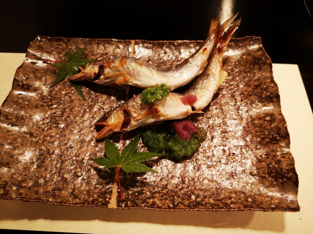 滋賀県産の稚鮎を頬張りながら