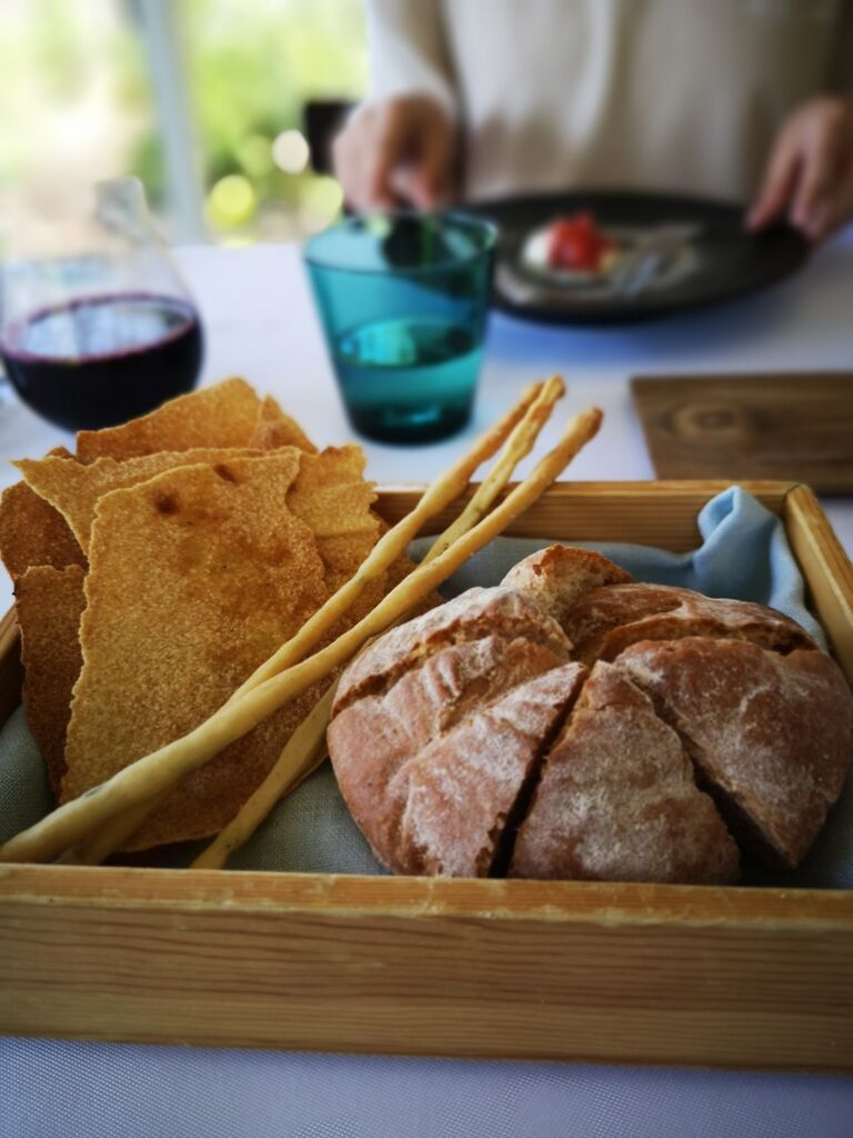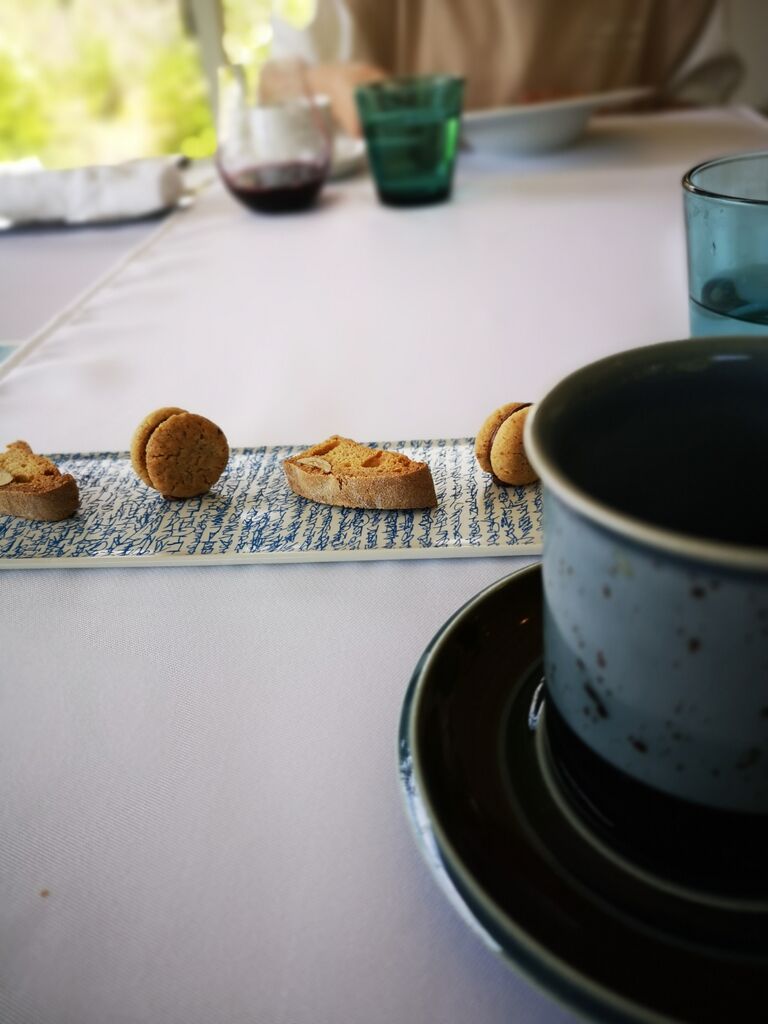 白を基調とした店内は、1950年から60年代のヴィンテージ家具が並び、まるでイタリアのトスカーナやピエモンテのワイナリーにあるレストランに迷い込んだような雰囲気が漂う。皿やクロスは、新しいのにどこか懐かしい、そんな人の体温を少しあたためてくれる「RATTA RATTARR(ラッタラッタル)」デザインのものも。これらの商品は、併設するショップ棟「NATUR HOME」で購入することもできる。