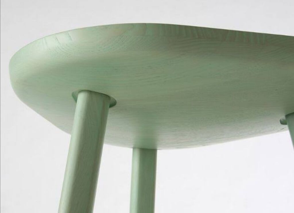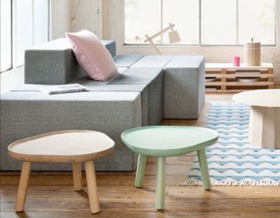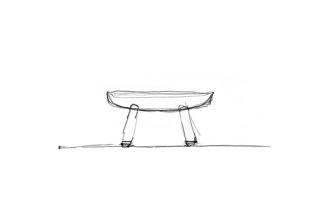 内容: 3 本脚のソフト トライアングル テーブルは、直径の小さい木材を組み立てて、わずかに彫刻された天板で重厚な外観に仕上げています。制御された幾何学的な遊びによって、三角形と円の中間のような形に変化する、生のまな板のようなものです。